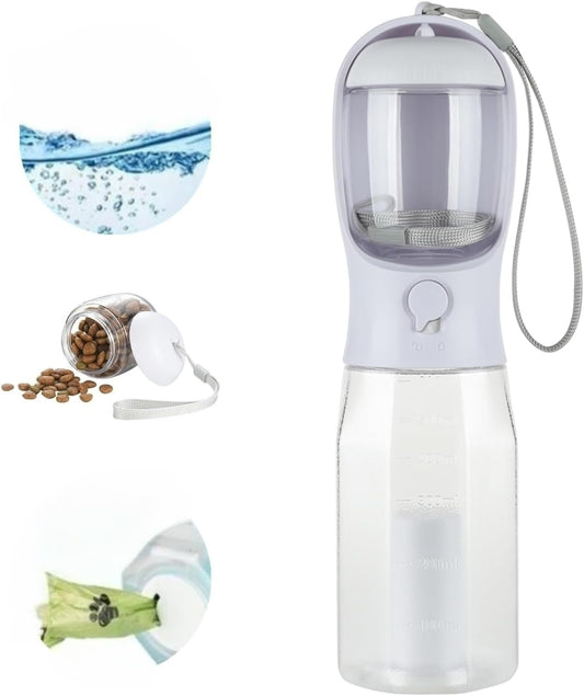 Botella 3 en 1 para Mascotas: Agua, Comida y Dispensador de Bolsas
